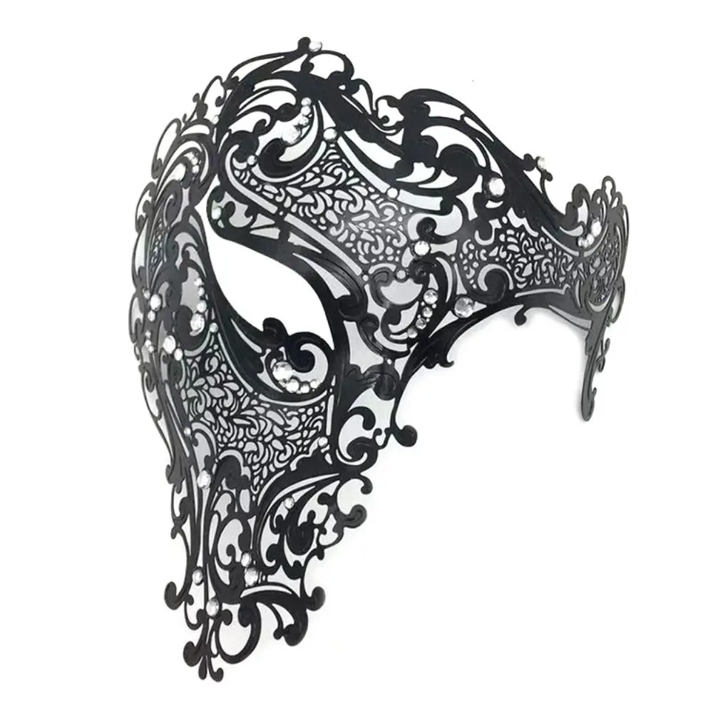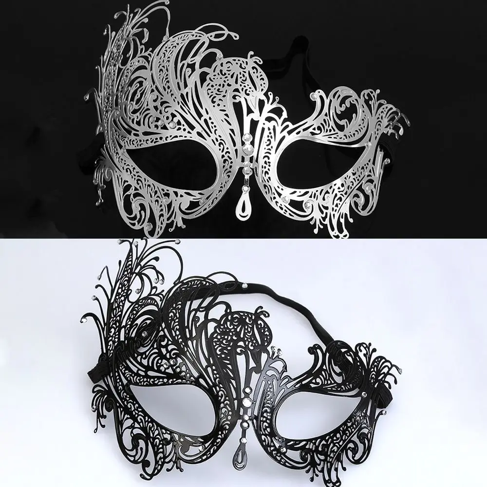 Black Gold Skull Metal Mask Halloween Rhinestone Half Face Venetian Masquerade Men White Women Skull Party Mask